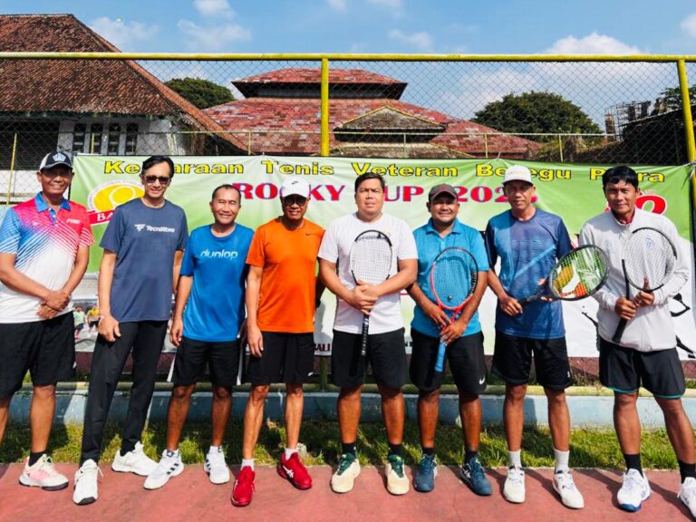 Partai final turnamen tenis beregu Barisan Atlet Veteran Tenis Indonesia (Baveti) Bali yang bertajuk Rocky Cup yang dimainkan dilapangan tenis...