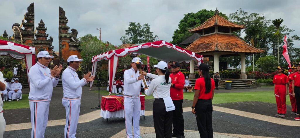 Badung, Kontingen Kabupaten Badung menerima Api Obor Pekan Olahraga Provinsi (Porprov) Bali XVI 2025 yang diserahkan oleh kontingen Kabupaten Tabanan, Senin (8/9) di Puspem Badung. Api obor diterima oleh Kepala Dinas Pendidikan, Kepemudaan dan Olahraga (Disdikpora) Kabupaten Badung, I Gusti Made Dwipayana mewakili Bupati Badung.